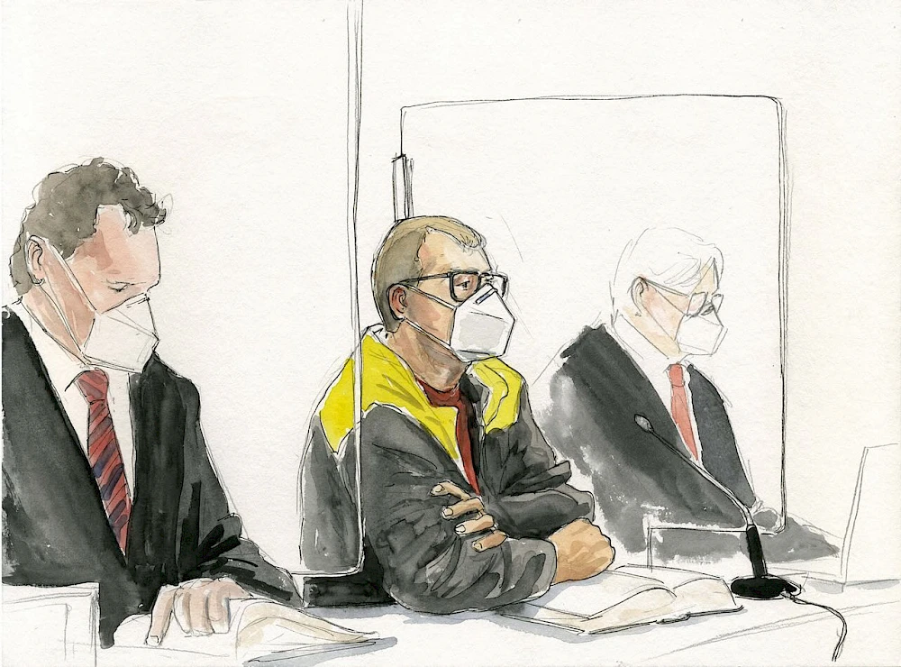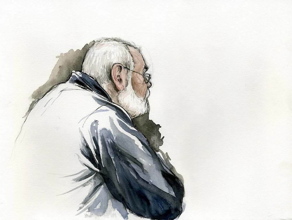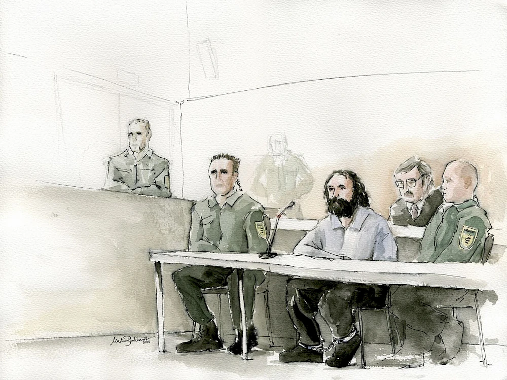Bei den ersten Prozessen macht man sich darüber noch nicht so wirklich viele Gedanken, einfach weil es an sich schon mal aufregend ist, in einem Gerichtssaal mit dabei zu sein. Man ist dann auf seine Arbeit fokussiert, um die Szenerie möglichst detailgetreu auf Papier zu bringen. Erst im Lauf der Zeit ist mir klar geworden, wie die Dinge dann wahrgenommen werden. Dabei handelt es sich weniger um die Zeichnung, die ich anfertige. Die liegt dem Ganzen zugrunde. Entscheidend ist allerdings, wie sie in der Berichterstattung genutzt wird. Der Text entscheidet, wie die Zeichnung interpretiert wird. Wenn ein Autor schreibt, dass die Person herumgealbert hat, wird man das Bild anders sehen, als wenn jemand schreibt, dass die Person nervös oder unbeteiligt war. Dementsprechend werden die Bilder anders wahrgenommen. Die Beschreibung hat damit die Oberhand.
